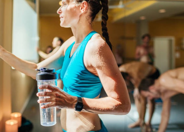 Sākat lēnām. Ļaujiet sev pierast pie paaugstinātās telpas temperatūras. Pat ja jūs agrāk esat piedalījies daudzās karstās jogas nodarbībās, dodiet savam ķermenim laiku aklimatizēties pie temperatūras. Tas ir īpaši svarīgi tiem, kas piedalās nodarbībās pirmo reizi. Izvairieties no liekas enerģijas izmantošanas, kamēr pierodat pie siltuma. Neesiet pārāk prasīgs pret sevi, uzsākot nodarbības, pakāpeniski iesaistaties nodarbībā un lēnām apgūstiet pozas. Uzturiet ūdens līdzsvaru. Mēģiniet izdzert 0,5 litrus vai vairāk ūdens aptuveni stundu vai divas pirms nodarbības. Un neaizmirstiet paņemt līdzi ūdens pudeli uz nodarbību, dzerot tik bieži, cik vien nepieciešams visu nodarbības laiku. Pēc nodarbības, turpiniet dzert ūdeni līdz pat trim reizēm pa 0,5 litriem par katru stundu, kurā piedalījāties nodarbībā. Klausieties savā ķermenī un, ja jūtat kaut mazāko norādi, ka jūs sākat piedzīvot dehidratāciju, nekavējoties pārtrauciet nodarbību.